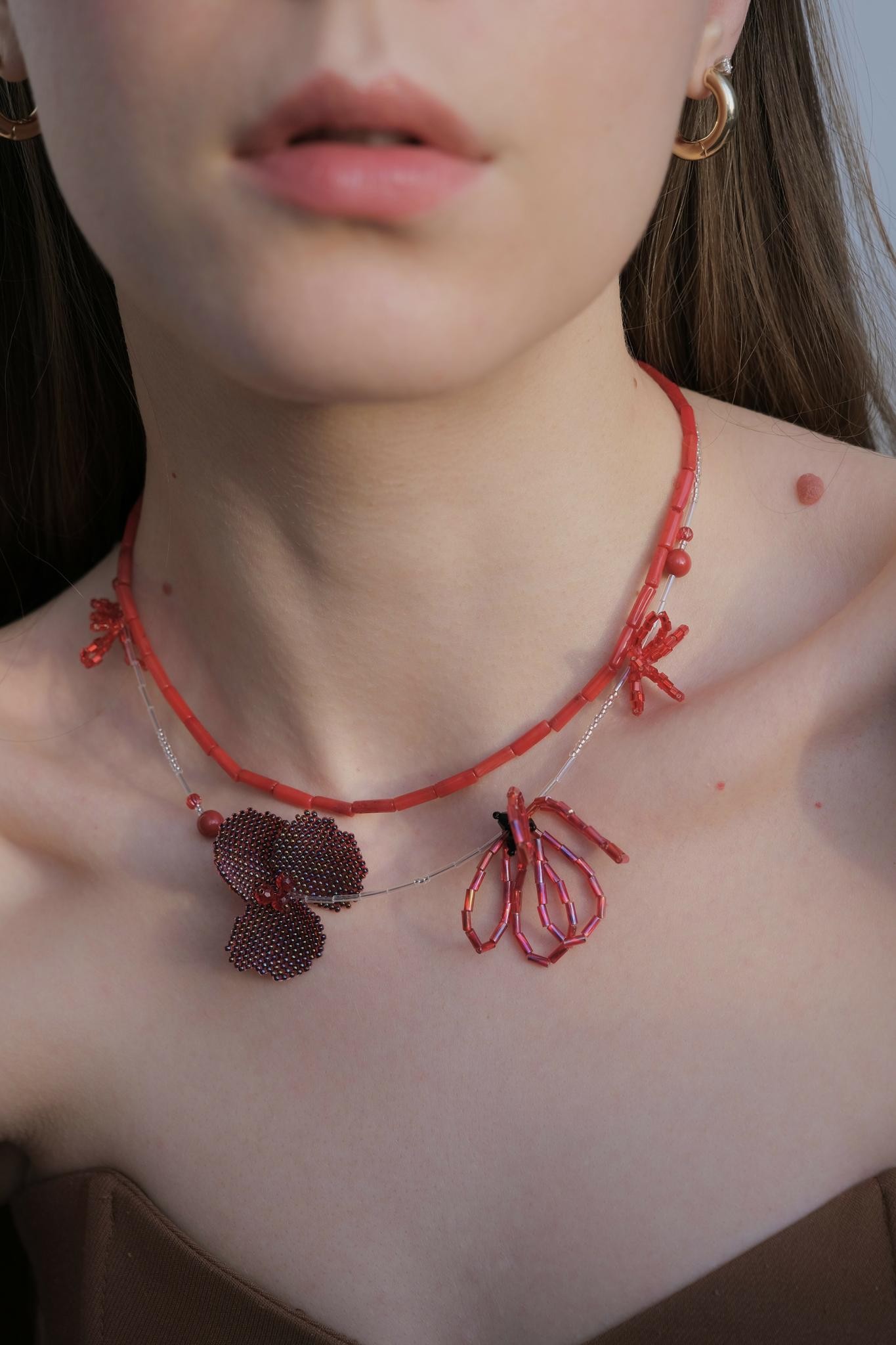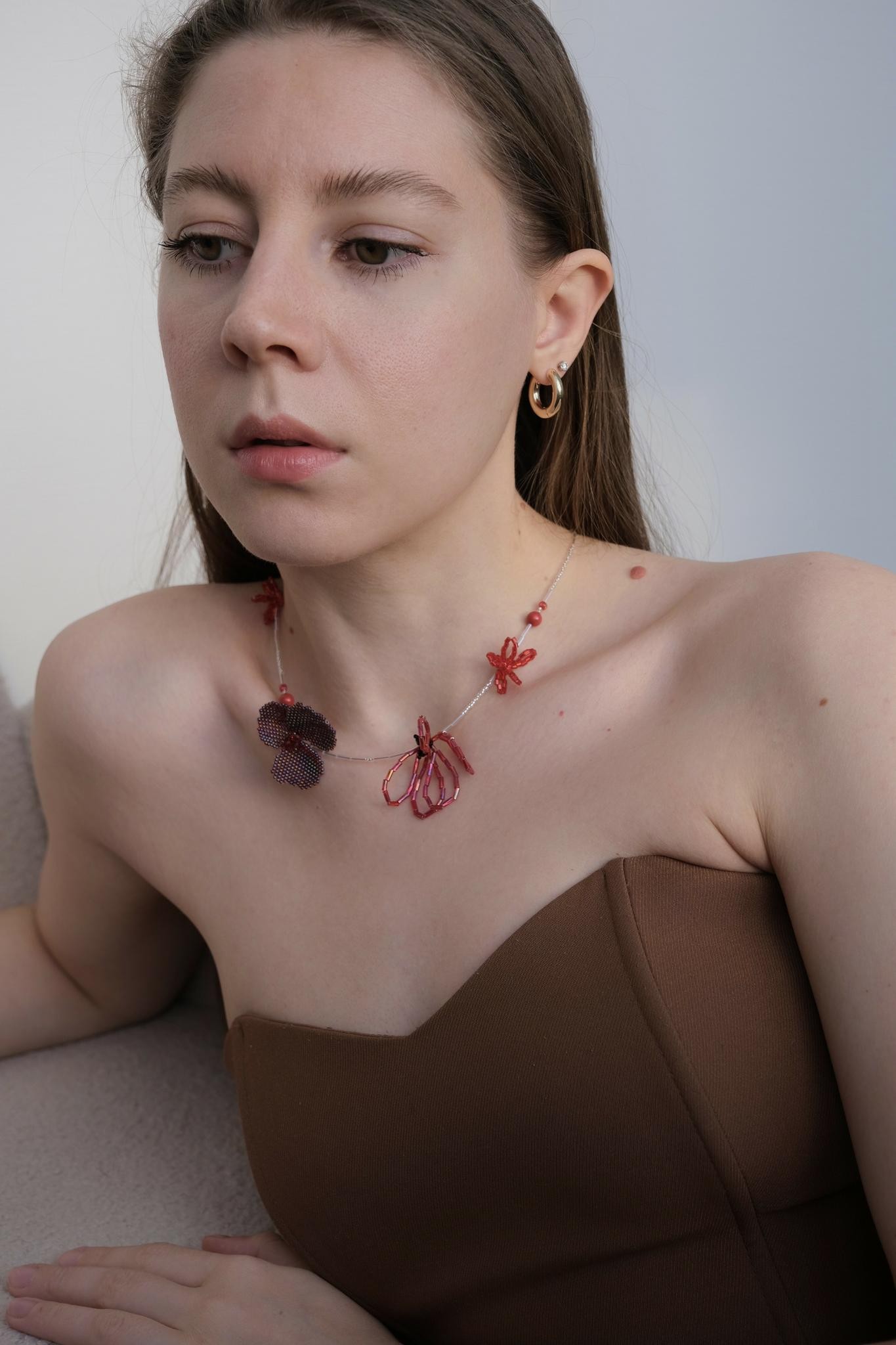 Колье «красные полевые цветы»