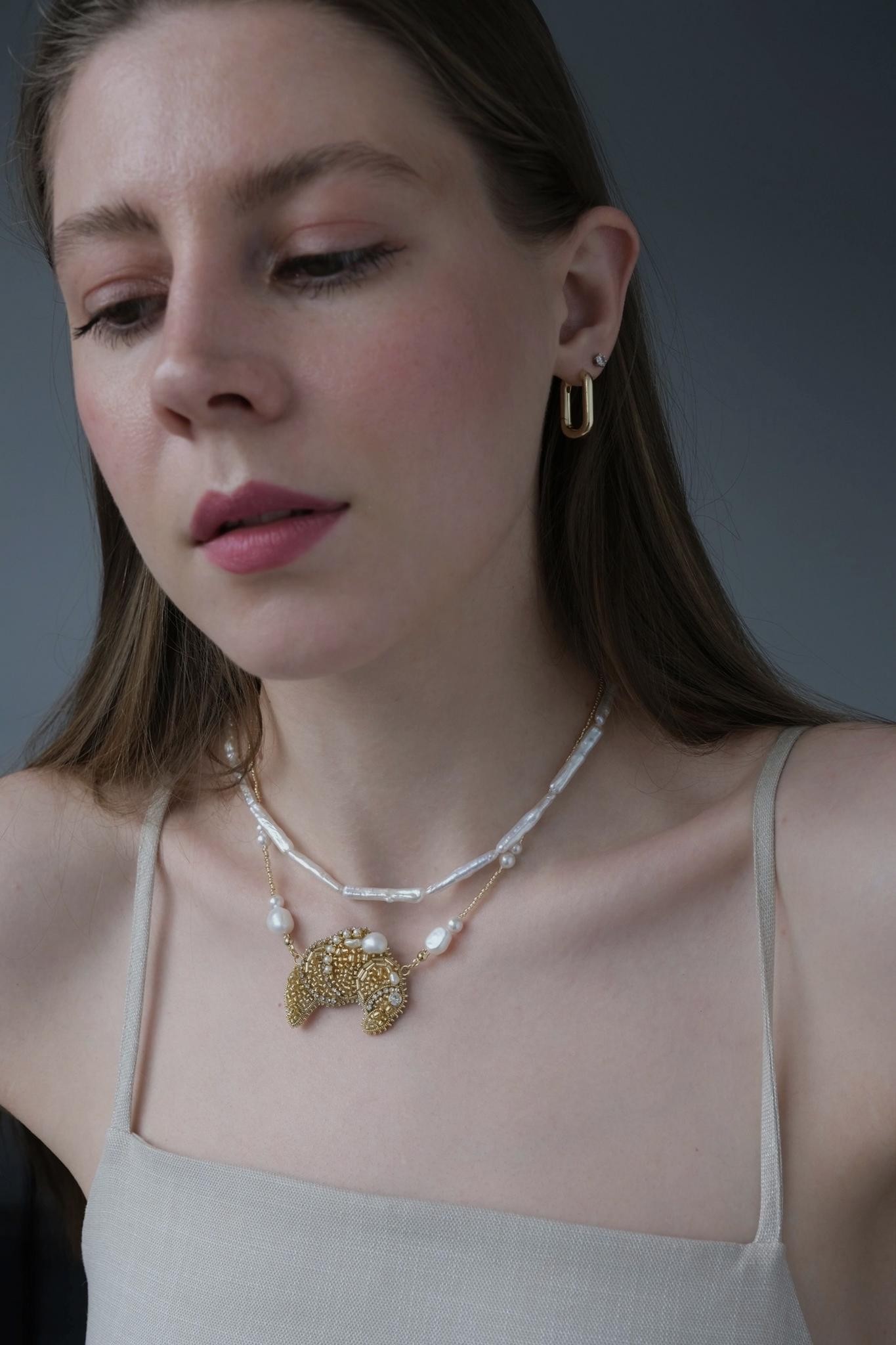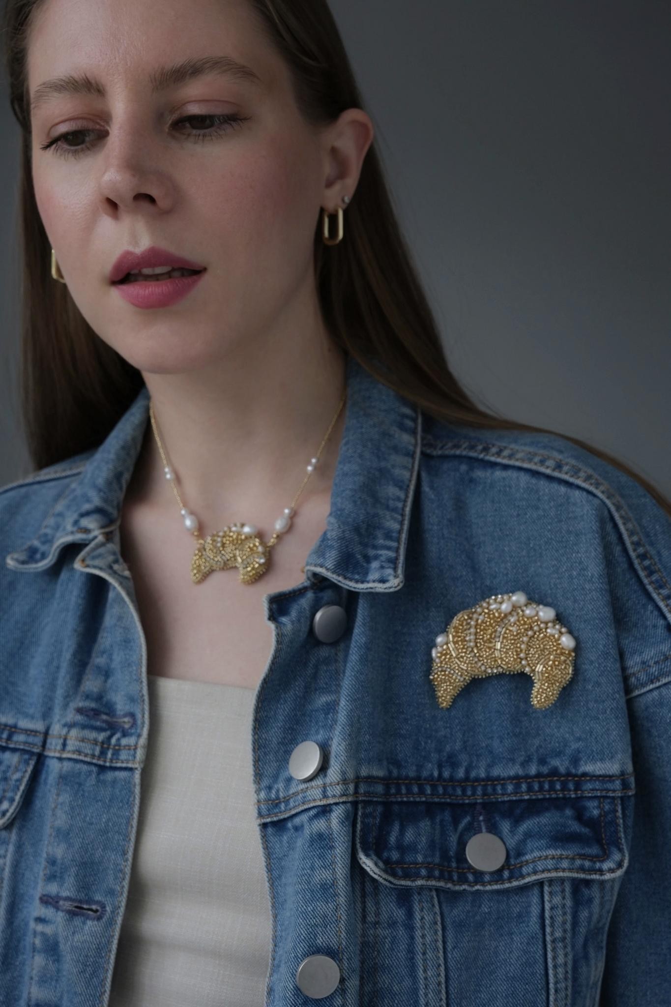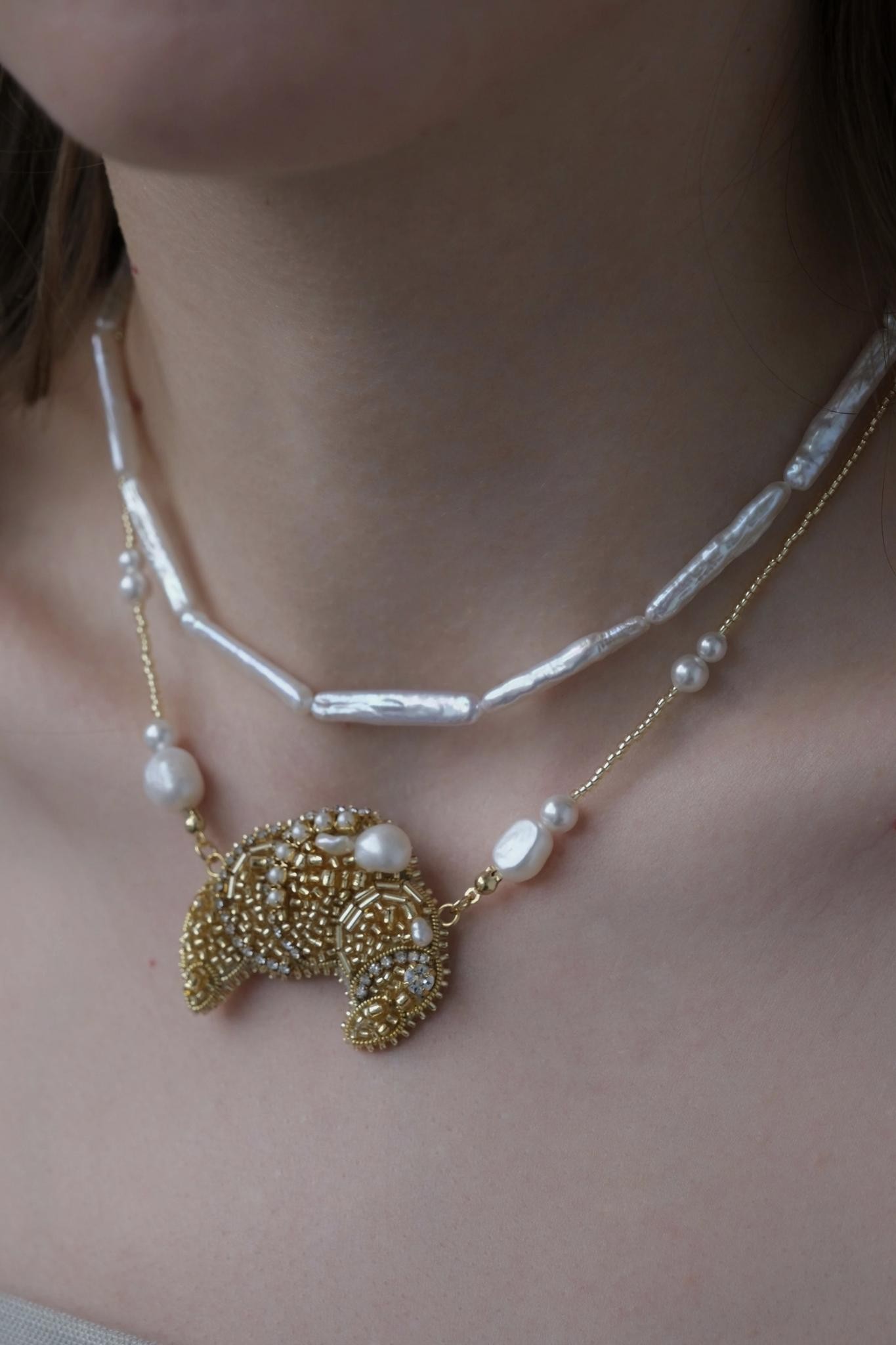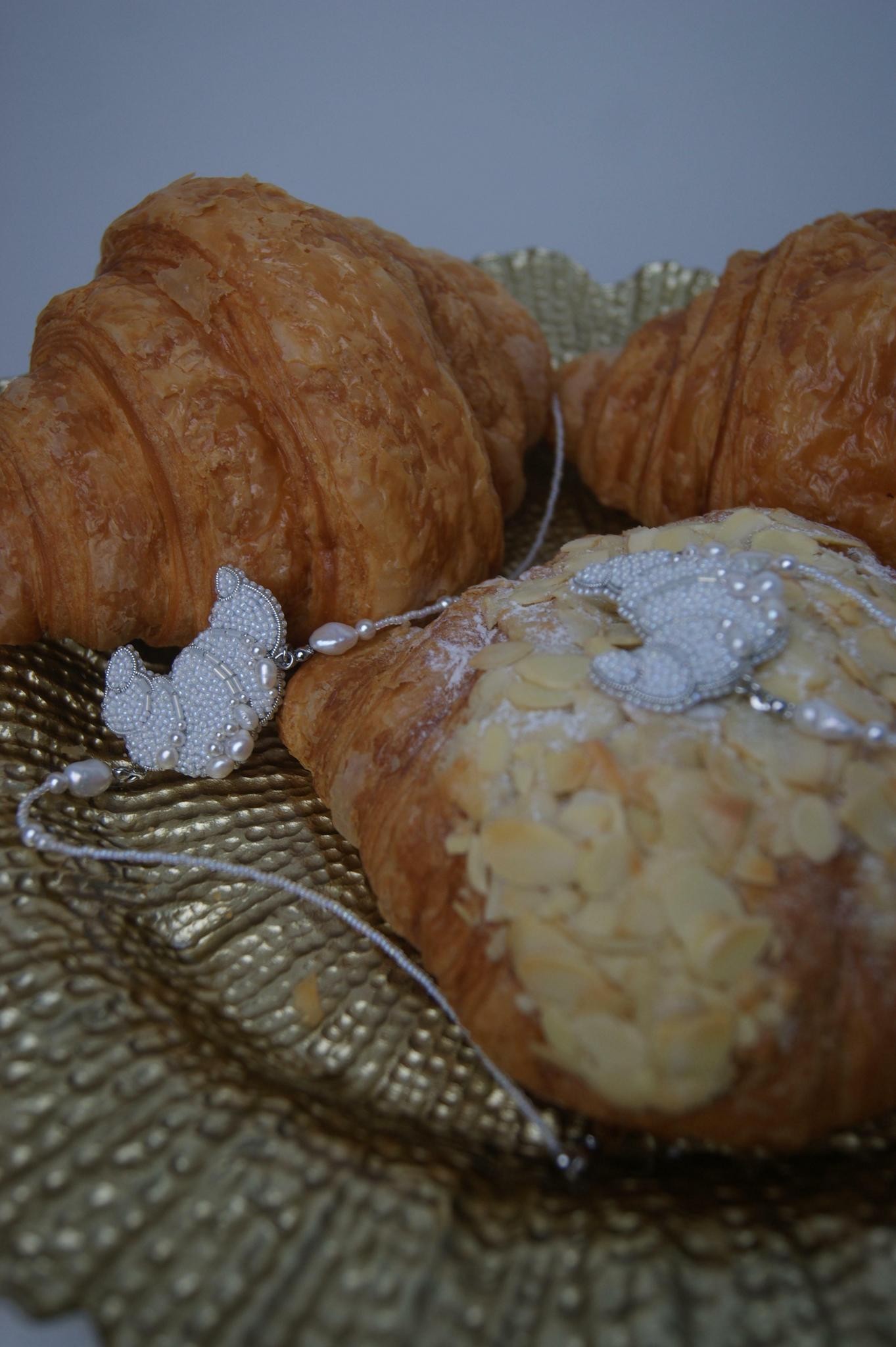 Чокер с вышитым круассанчиком из японского ювелирного бисера и натурального жемчуга. Длина 40-46 см<br /><br />При необходимости скорректировать длину, пожалуйста, напишите об этом в комментарии к заказу! Мы соберём чокер необходимого для вас размера бесплатно