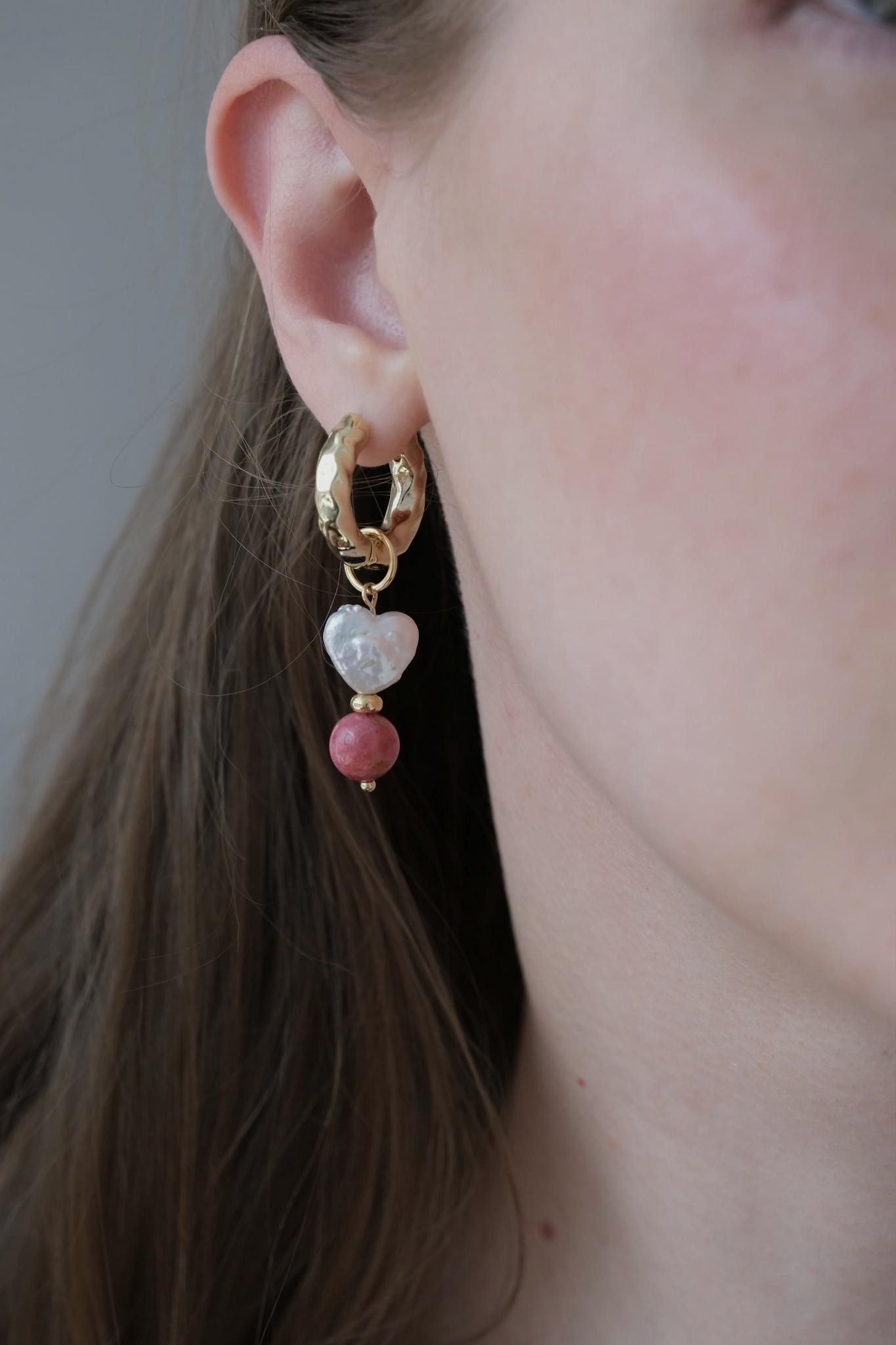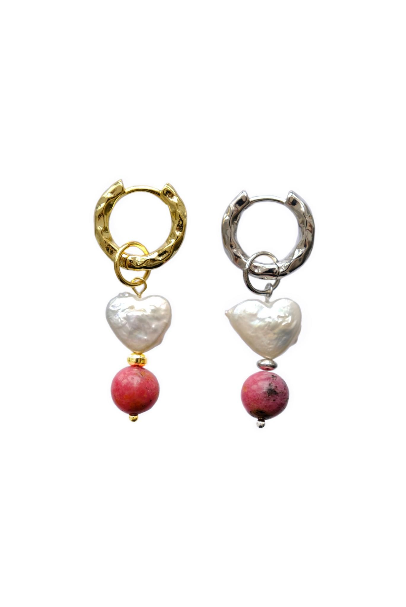 Подвеска из натурального жемчуга в форме сердца и родонита к серьгам-трансформерам, чокерам и колье