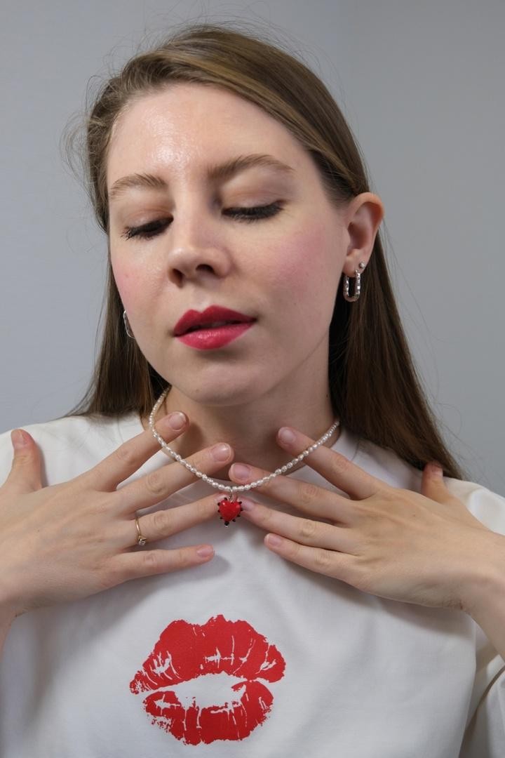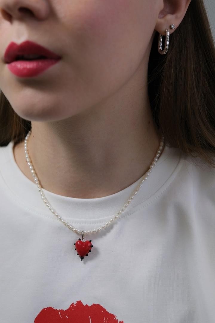 Подвеска из натурального жемчуга в форме сердца и родонита к серьгам-трансформерам, чокерам и колье